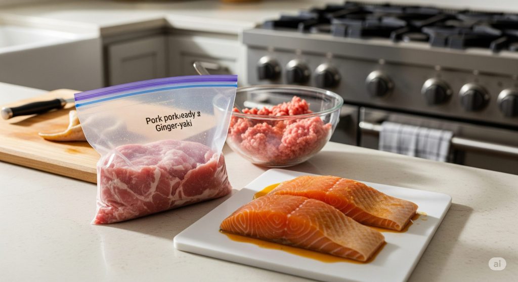 - 「下味冷凍」が最強:買ってきたらすぐに、焼肉のタレや生姜焼きのタレ、塩麹などに漬け込んで冷凍します。平日は解凍して焼くだけで、味付け不要のメインディッシュが完成。お肉も柔らかくなります。